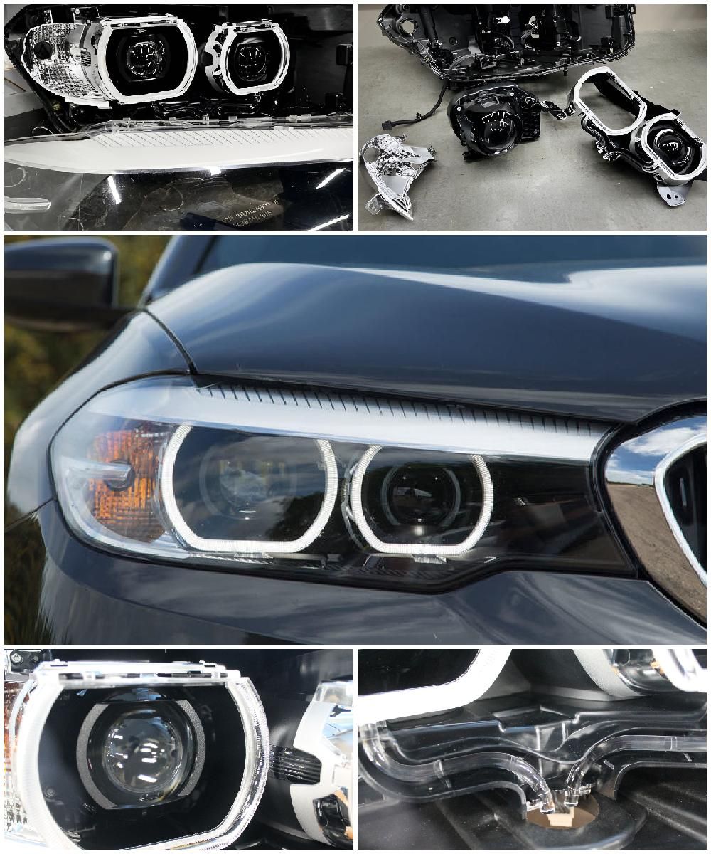 При этом наблюдается ярко выраженная желтизна или почернение, неравномерное свечение, потеря яркости. В данном случае уже придется снимать фару с автомобиля и разбирать ее для исправления ситуации. При разборе фара предварительно прогревается в специальной печи при определенной температуре для размягчения герметика. Сильно прогоревший световод не подлежит восстановлению и меняется на новый. К сожалению, новых оригинальных запчастей не существует, поэтому используются качественные аналоги или донорские б/у детали. В случае, если требуется ремонт светодиодного модуля, есть несколько путей: