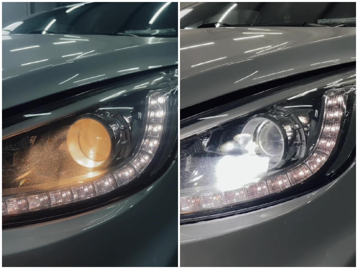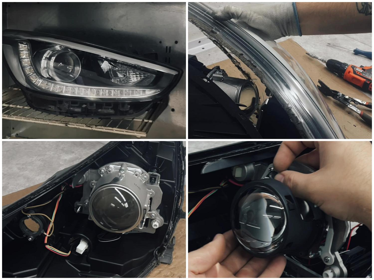 Было решено произвести перестройку фар с разбором, полировкой стекол и заменой штатных линз с галогеновыми лампами на новые светодиодные линзовые модули Luxsar.